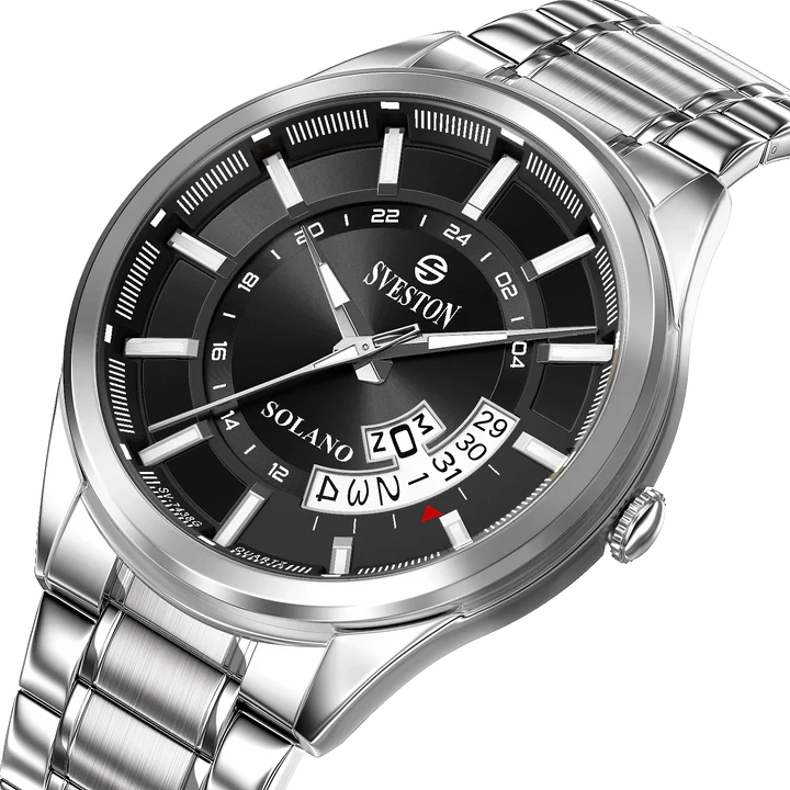 Experience luxury and precision with Sveston Solano a men’s watch made with Japanese Quartz crafted from durable stainless steel it boasts a 38mm case size with a 49mm lug-to-lug distance and 3ATM water resistance weighing 128 grams this watch offers both style and substance